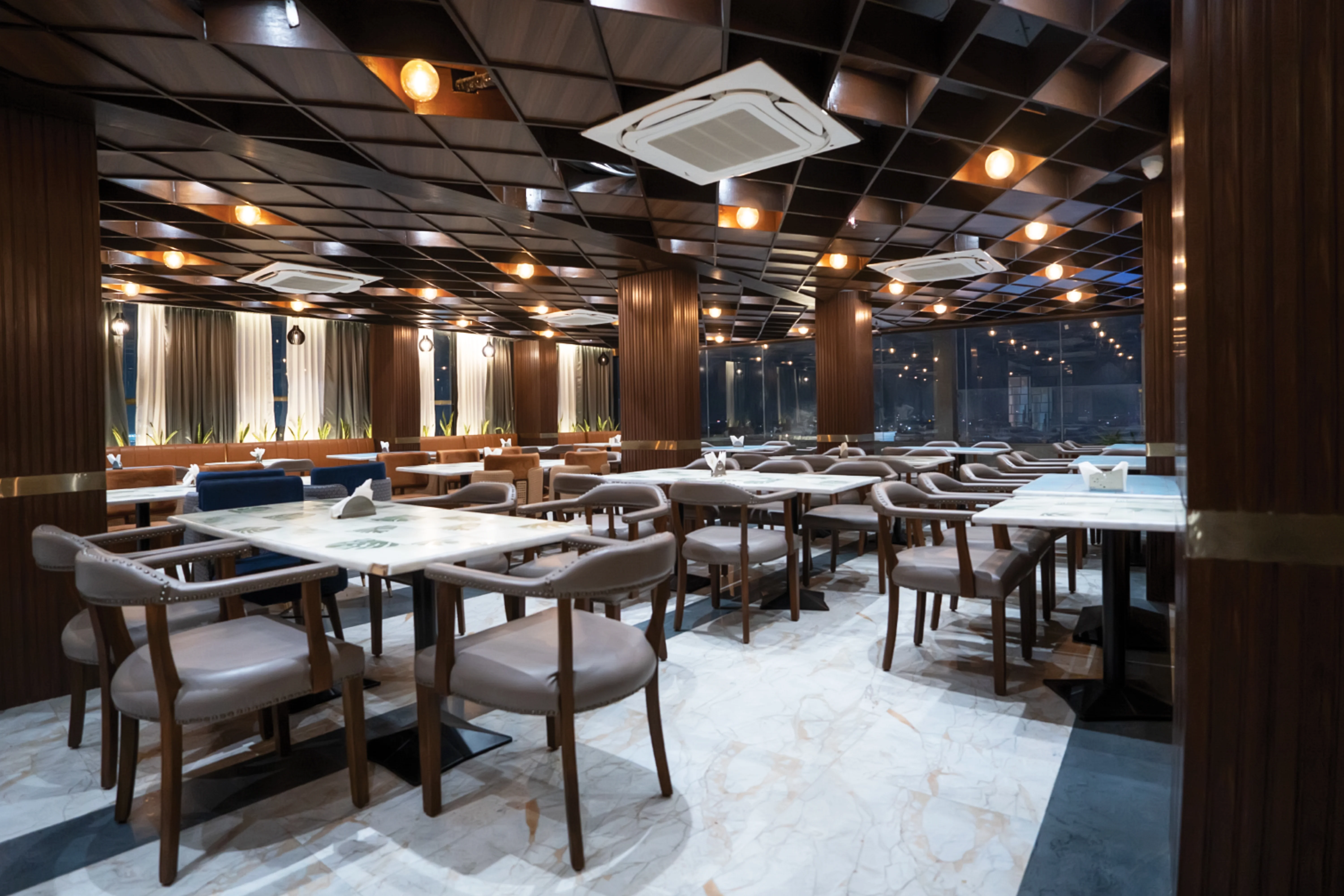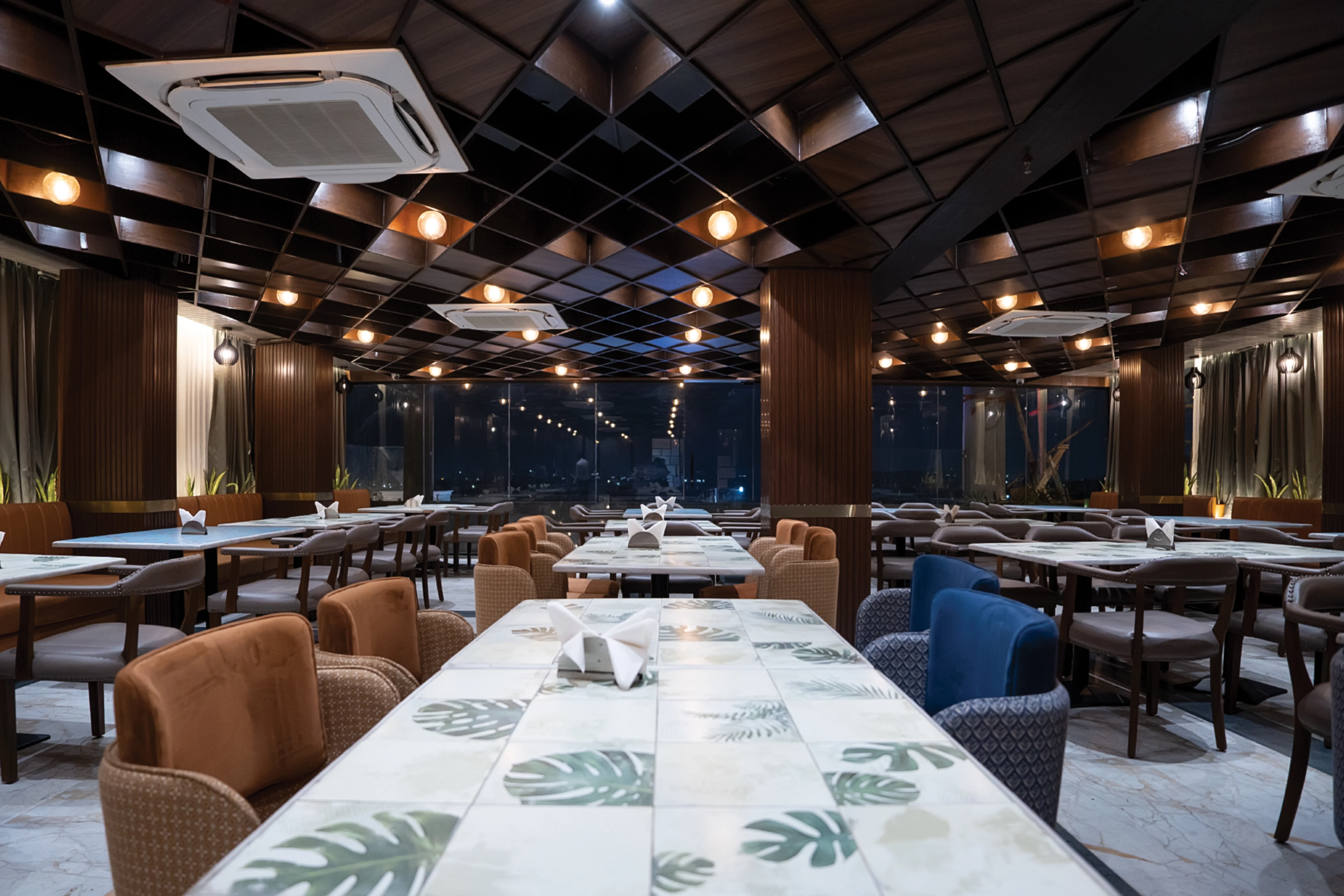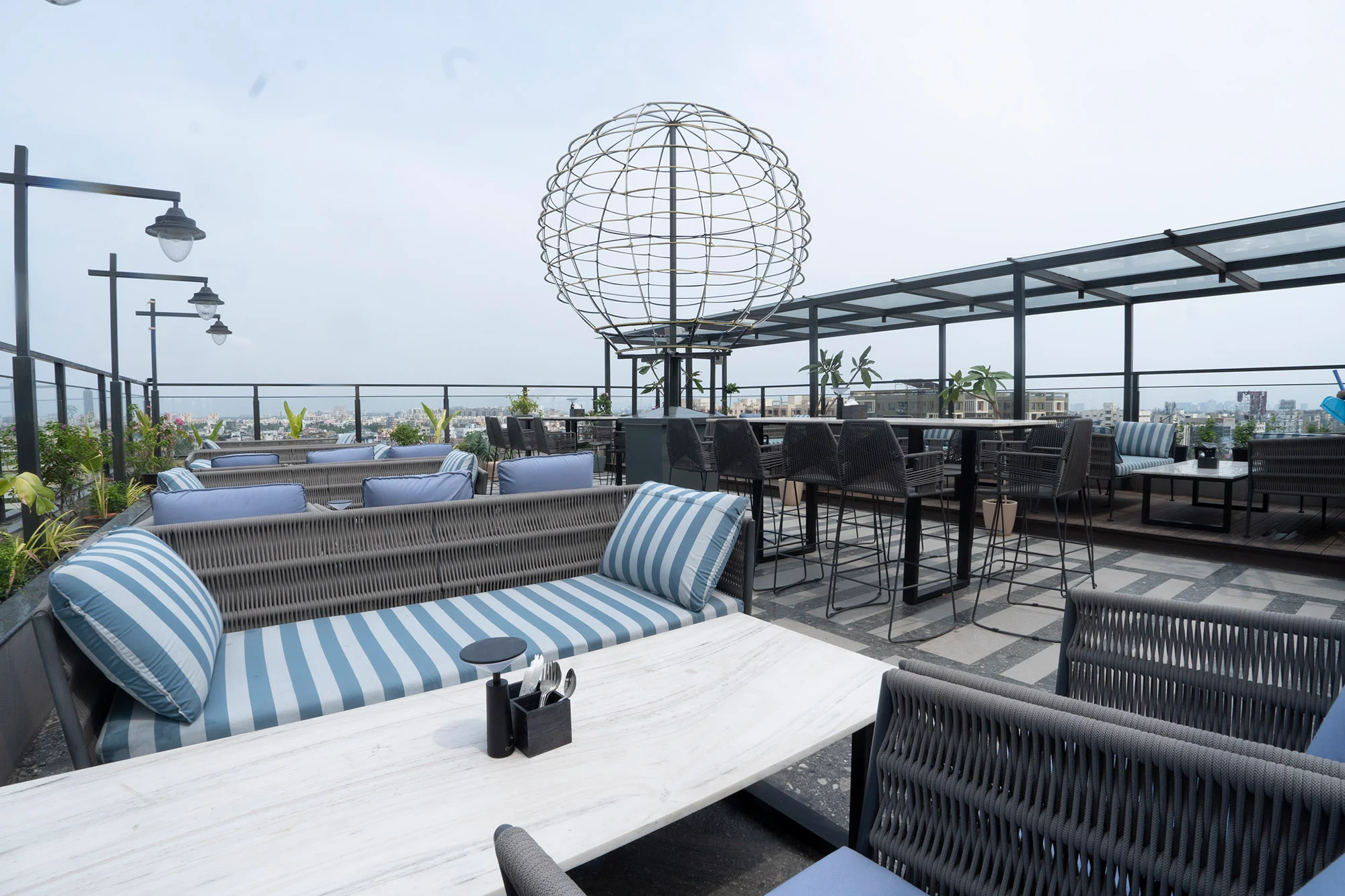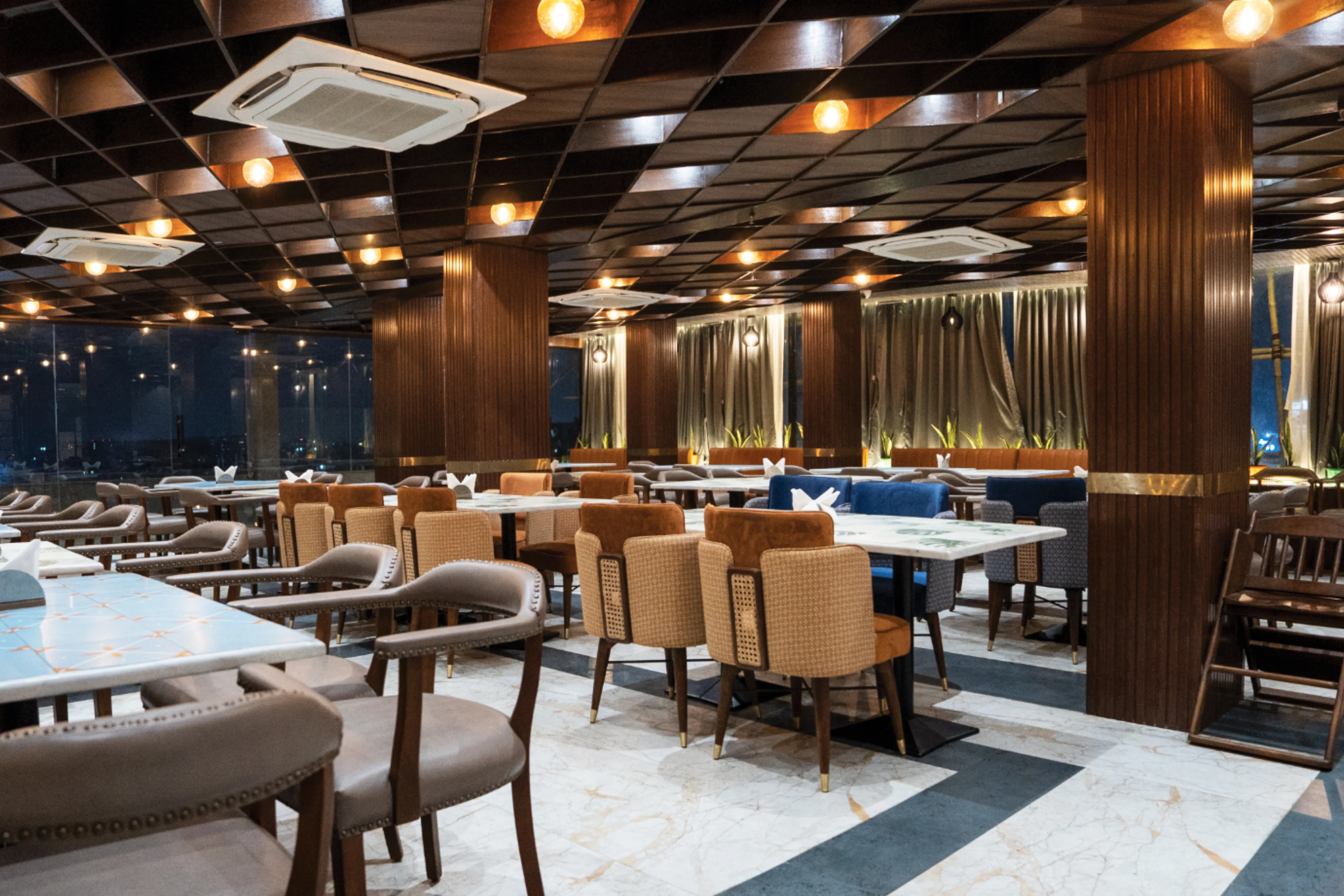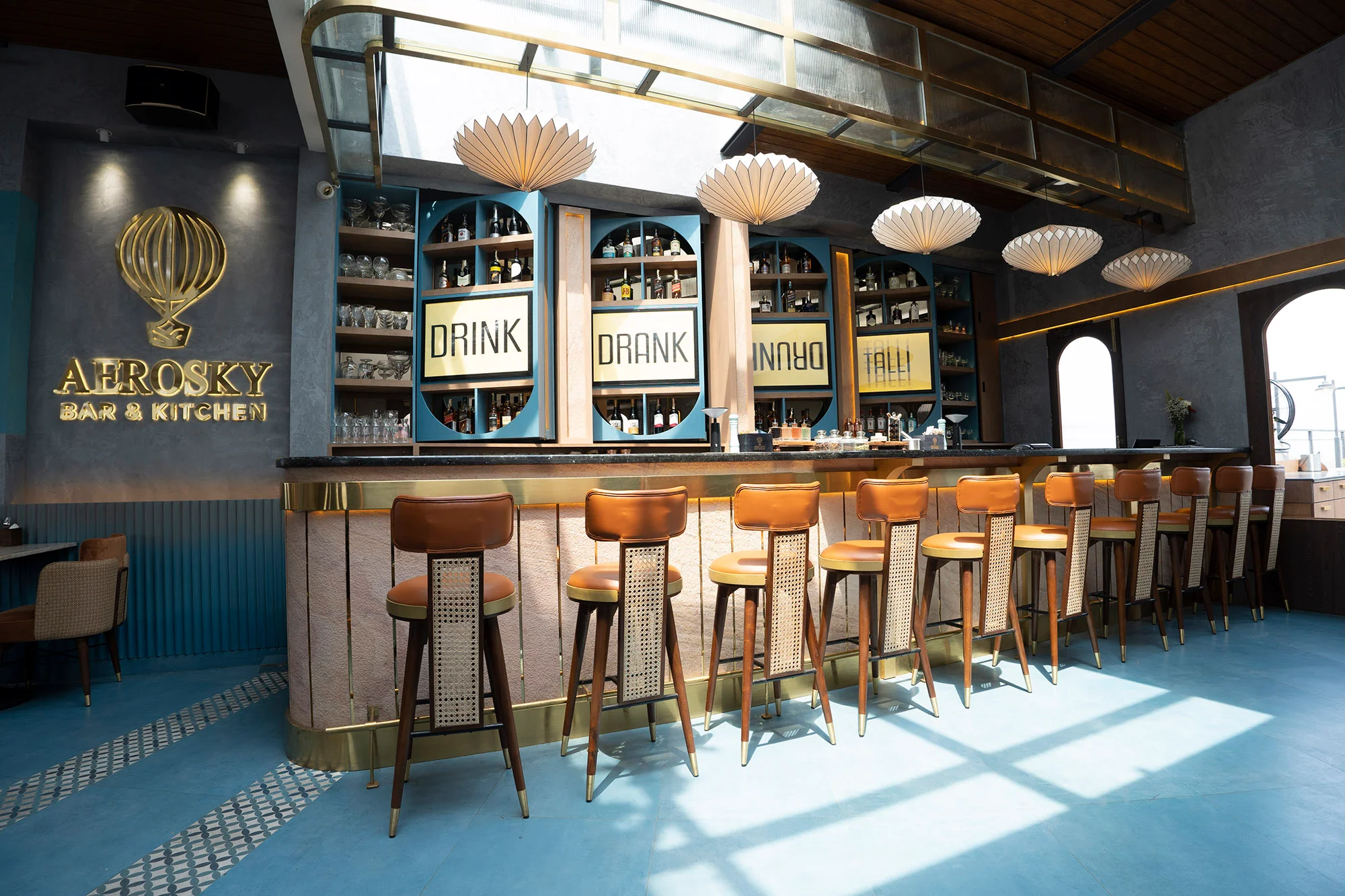 Aerosky Bar and Kitchen promises an unforgettable dining experience with exciting curated cocktails. Revolving bar where over 300 bottles revolve at once along with 360 degree skyline view of Kolkata, Aerosky is the perfect spot to dine and drink at. With a vast spirits collection, view of CCU airport and flights flying every few minutes - Aerosky provides an ideal spot to chill with your friends, family and loved ones. Romantic spot with both indoor and outdoor seating!